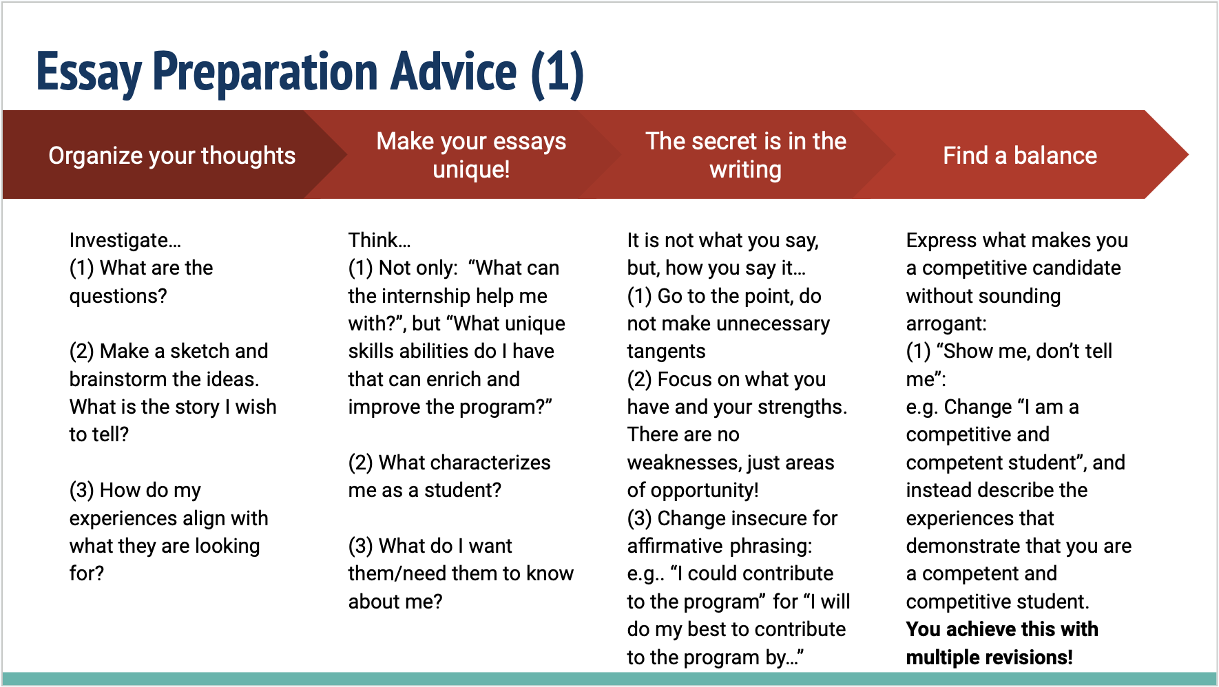 Nonetheless, this should not discourage you! I have also learned that while there might be some arbitrary factors through the selection processes, the secret to increase your chances in getting one of these opportunities is in preparing a strong application.